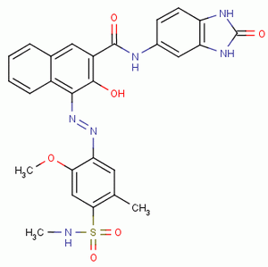ឈ្មោះក្លែងក្លាយ៖២- ណុបបាលេលេនីកាប្រអប់មេឌី, អិន - (២-៣ ឌីឌីដ្រូ - ២- អុកស៊ី - ១ ហ - បេនហ្សីមីហ្សូល ៥-អ៊ីល) -៣- អ៊ីដ្រូក្លូ ៤- ((២- មេតាណុល ៥- មេទីល -៤ - ((មេទីលម៉ីមីណូស៊ុលហ្វីញ៉ូម)) phenyl) azo) -; ២- ណុបតាលេលេនីកាខាំមេឌី, អិន (២-៣ ឌីអ៊ីដ្រូរ៉ូ ២- អុកសុី -១H- បេនហ្សីមីដាហ្សូ ៥- អ៊ីល) -៣- អ៊ីដ្រូសែន ៤- (២- (២- មេតាណុល ៥- មេទីល ៤- ((មេតាមីណូ) sulfonyl) phenyl) diazenyl) -; N- (2,3-Dihydro-2-oxo-1H-benzimidazol-5-yl) -3-hydroxy-4 - ((2-methoxy-5-methyl-4 - ((methylamino) sulphonyl) phenyl) azo) naphthalene-2-carboxamide; ១២៥១៦; Scarlet ជ្រៅ; Carmine អចិន្រ្តៃយ៍ HF4C; Peony ក្រហម [HO]; ; (4Z) -4- {2- [2-methoxy-5-methyl-4- (methylsulfamoyl) phenyl] hydrazinylidene} -3-oxo-N- (2-oxo-2,3-dihydro-1H-benzimidazol-5 -yl) -3,4-dihydronaphthalene-2-carboxamide